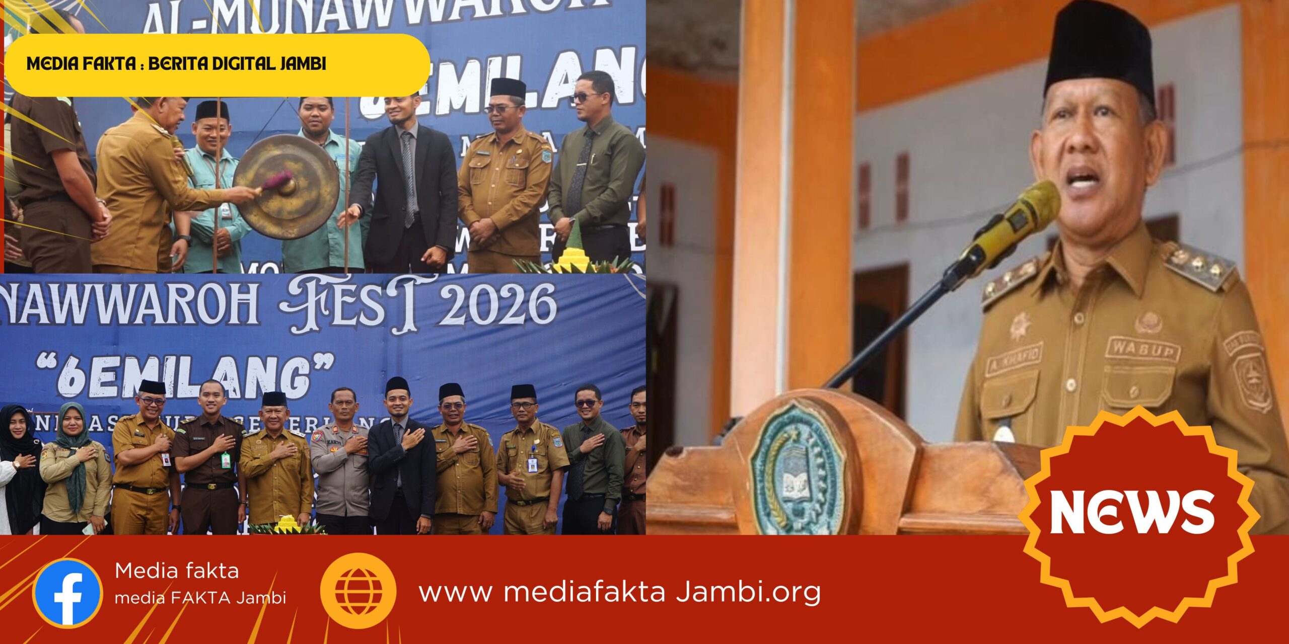 BANGKO,mediafaktajambi.org – Wakil Bupati Merangin, Khafid Moein, secara resmi membuka perhelatan akbar Al-Munawwaroh Fest 2026 yang bertempat di halaman Pondok Pesantren (Ponpes) Al-Munawwaroh, Bangko, pada Selasa (27/1). Acara ini diselenggarakan dalam rangka memperingati Hari Jadi (Milad) Ponpes Al-Munawwaroh yang ke-25.