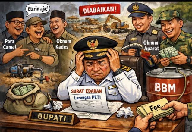 Ironisnya instruksi Bupati Merangin terkait larangan Penambangan Emas Tanpa Izin (PETI) Surat Edaran bernomor 414/491/DPMD/2025 tersebut diteken langsung oleh bupati Merangin dianggap “pepesan kosong” atau dikangkangi oleh oknum oknum aparatur baik ditingkat kecamatan sampai ke tingkat desa
